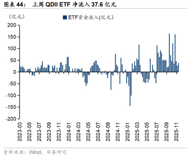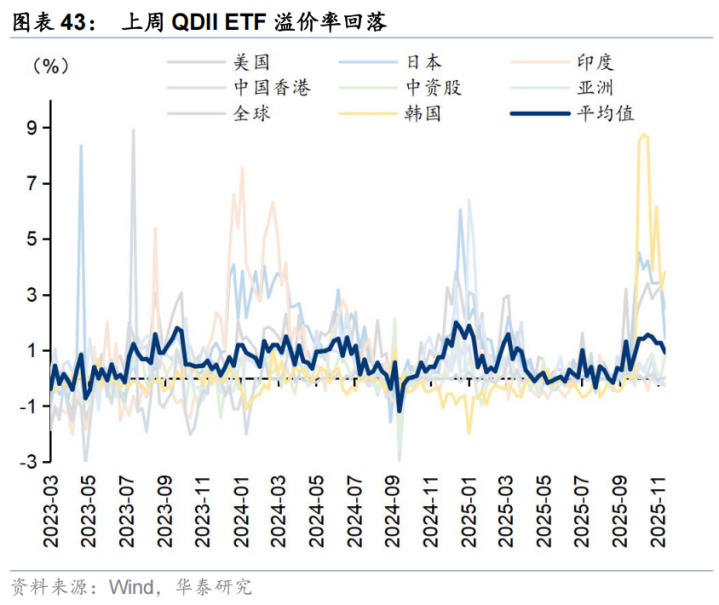 QDIIETF上周净流入37.6亿元,主要净流入中国香港。从溢价率来看,QDIIETF溢价率环比回落。