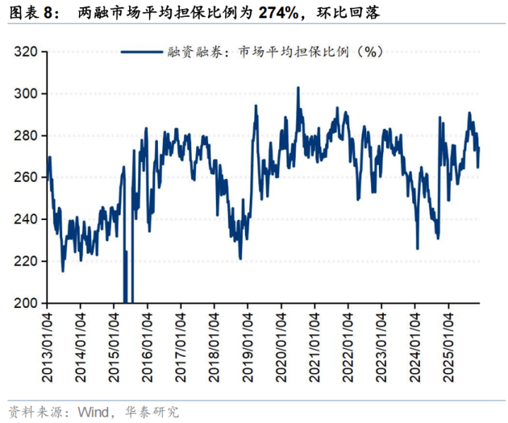 融资资金上周净流入196亿元,融资交易活跃度环比有所回升。(1)上周融资资金流入196亿元,(2)融资交易活跃度为10.2%,(3)上周市场平均担保比例为274%,环比小幅回落,(4)结构上,融资资金净流入电子、通信、国防军工等板块,净流出计算机、汽车、公用事业等板块。